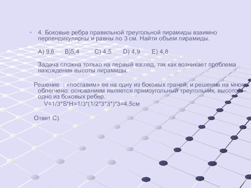 4. Боковые ребра правильной треугольной пирамиды взаимно перпендикулярны и равны по
