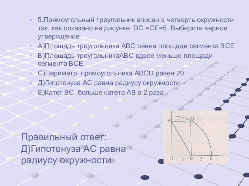 5.Прямоугольный треугольник вписан в четверть