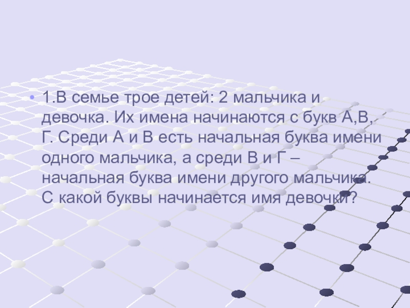 1.В семье трое детей: 2 мальчика и девочка. Их имена начинаются