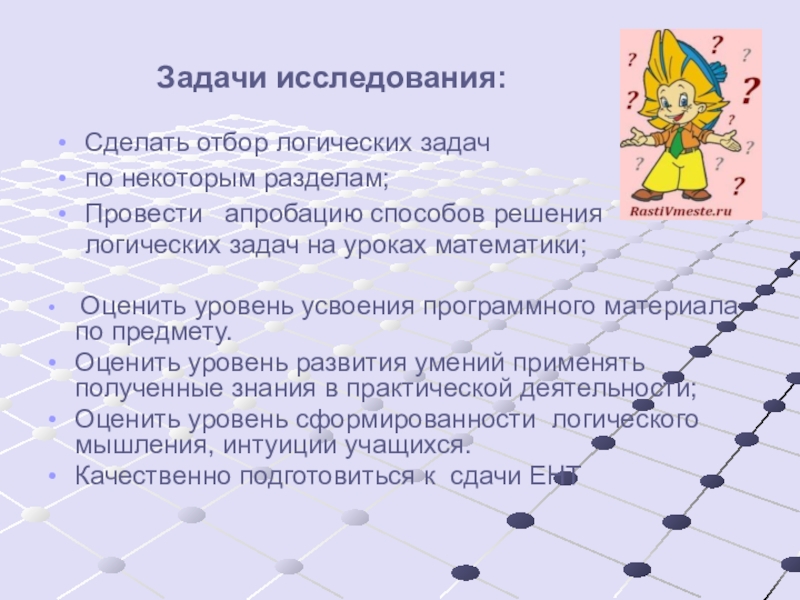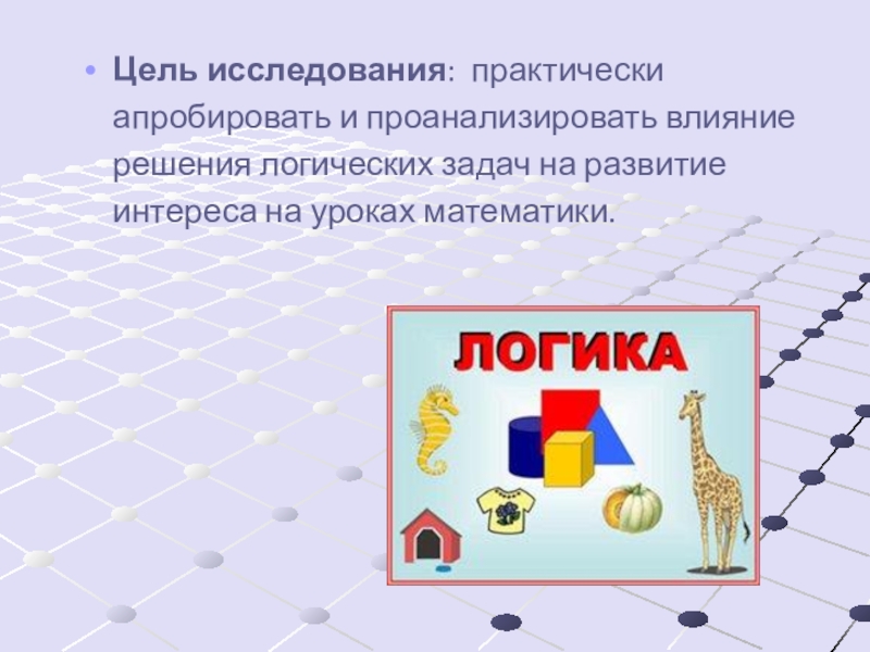 Слайд 3Цель исследования: практически апробировать и проанализировать влияние решения логических задач на
