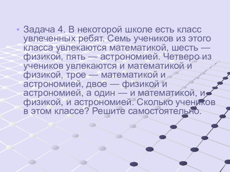 Задача 4. В некоторой школе есть класс увлеченных ребят. Семь учеников