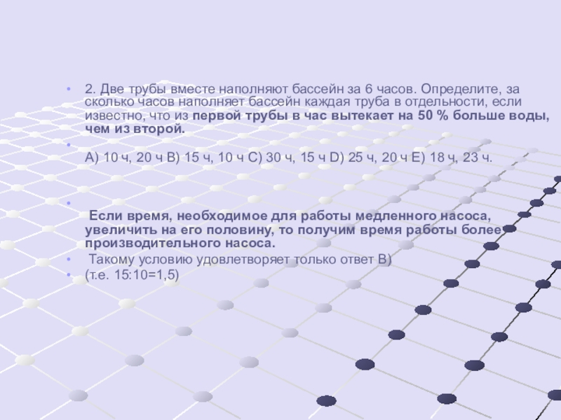2. Две трубы вместе наполняют бассейн за 6 часов. Определите, за