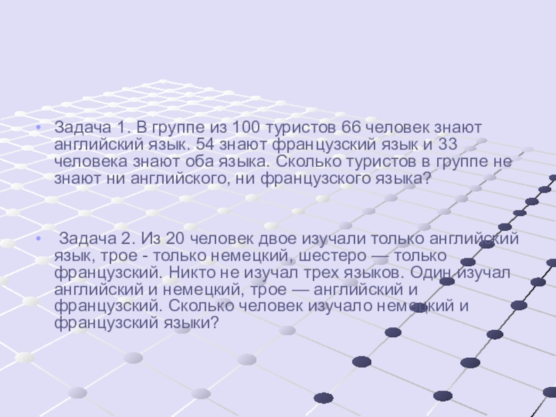 Задача 1. В группе из 100 туристов 66 человек знают английский