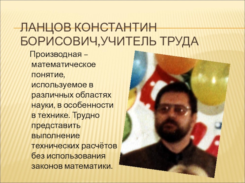 Слайд 6ЛАНЦОВ КОНСТАНТИН БОРИСОВИЧ,УЧИТЕЛЬ ТРУДА
