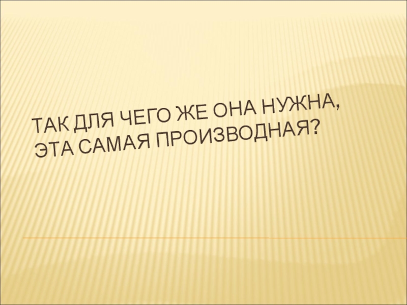 Слайд 11ТАК ДЛЯ ЧЕГО ЖЕ ОНА НУЖНА, ЭТА САМАЯ ПРОИЗВОДНАЯ?