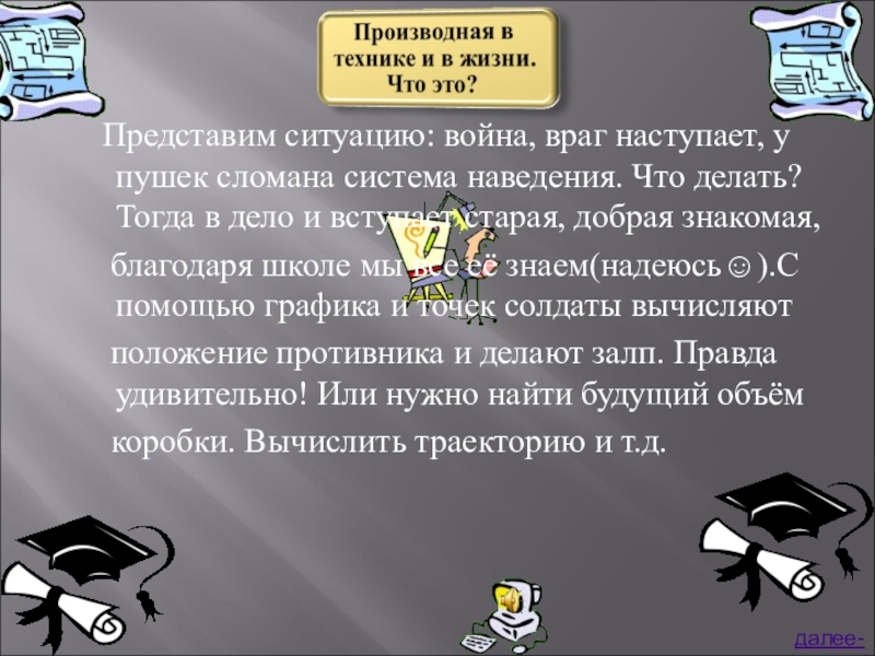 Слайд 33 Представим ситуацию: война, враг наступает, у пушек сломана система