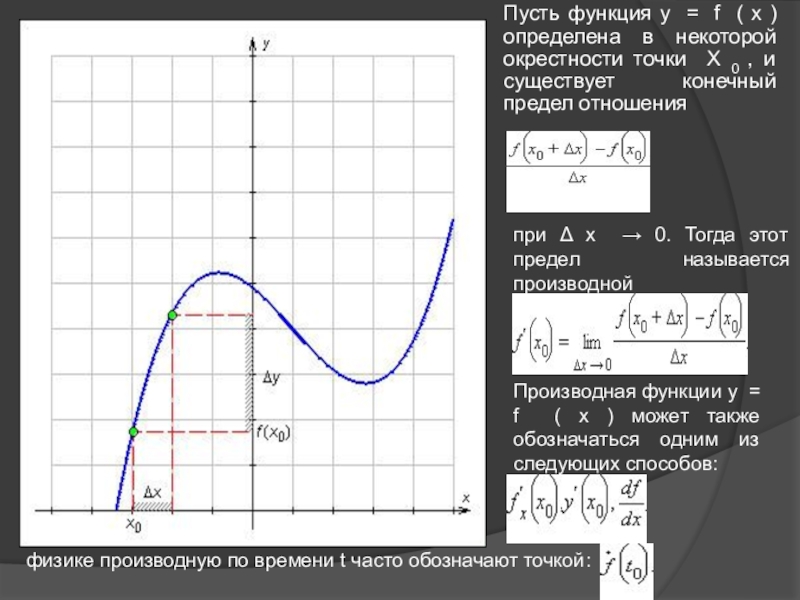Производная функции y = f ( x ) может также обозначаться одним из следующих способов: