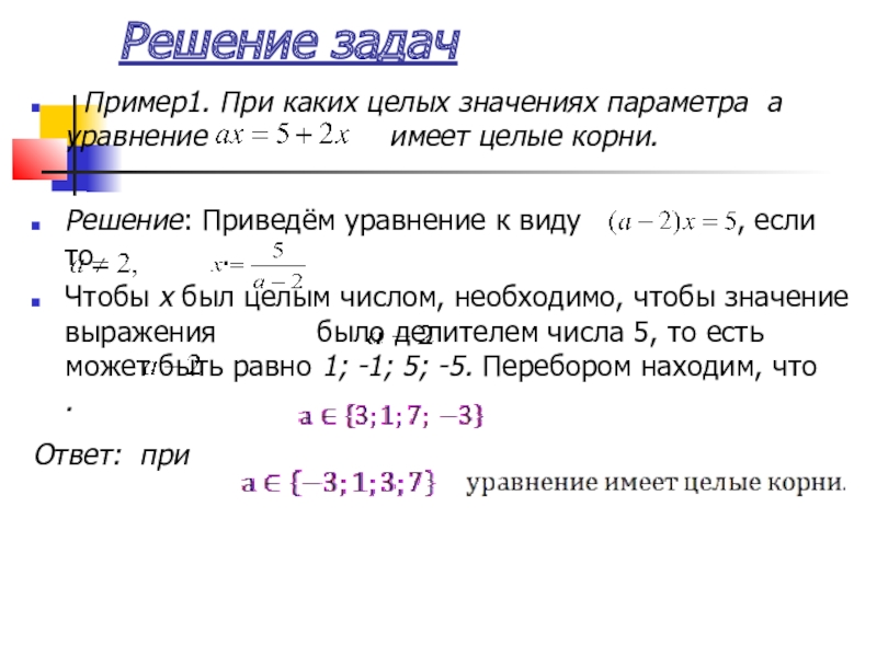 Решение: При а = 0 данное уравнение решений не имеет, и в ответе это обстоятельство должно быть отражено.