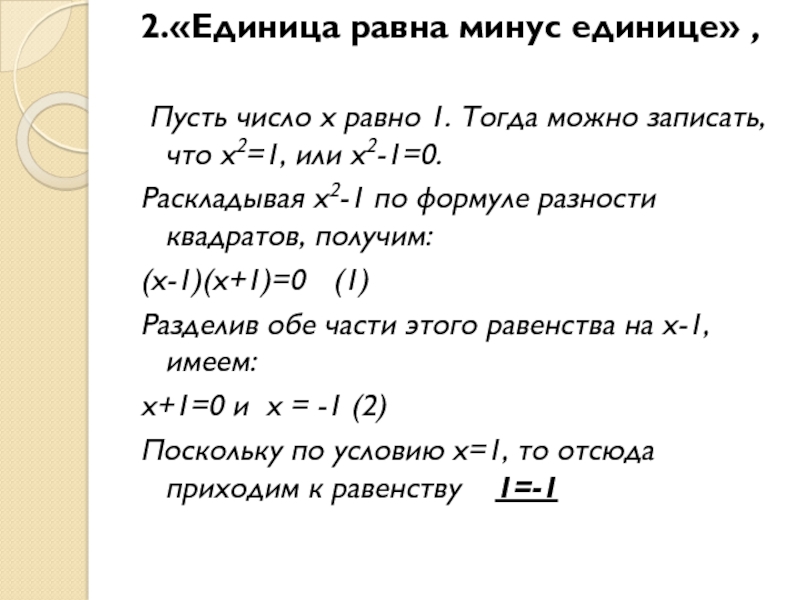 Поскольку по условию х=1, то отсюда приходим к равенству 1=-1