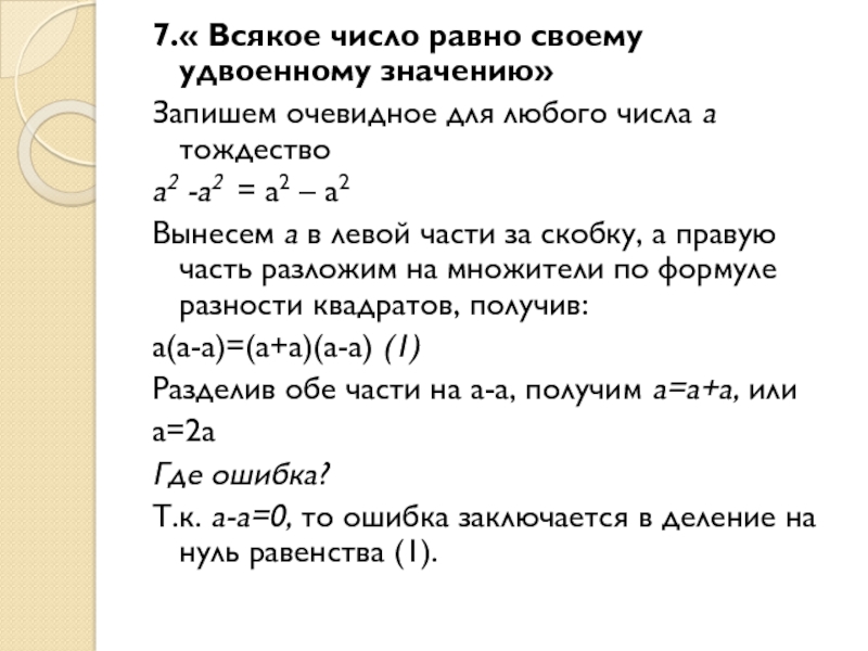 Слайд 127.« Всякое число равно своему удвоенному значению»