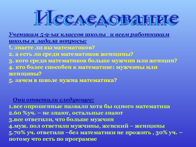 Слайд 20Опрос учащихся: «Знают ли они женщин-математиков?»