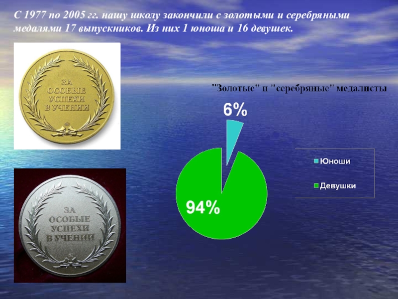 Слайд 25С 1977 по 2005 гг. нашу школу закончили с золотыми и