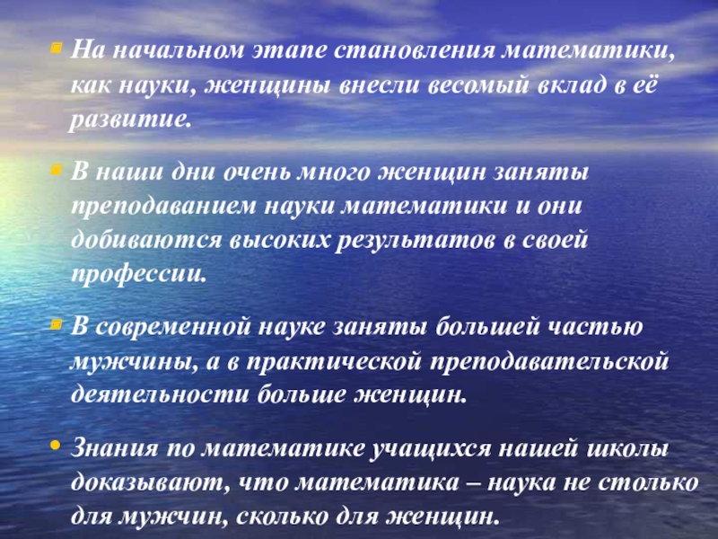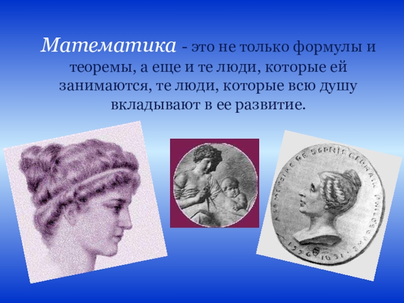 Слайд 27На начальном этапе становления математики, как науки, женщины внесли весомый вклад