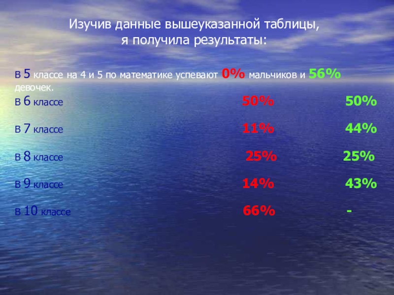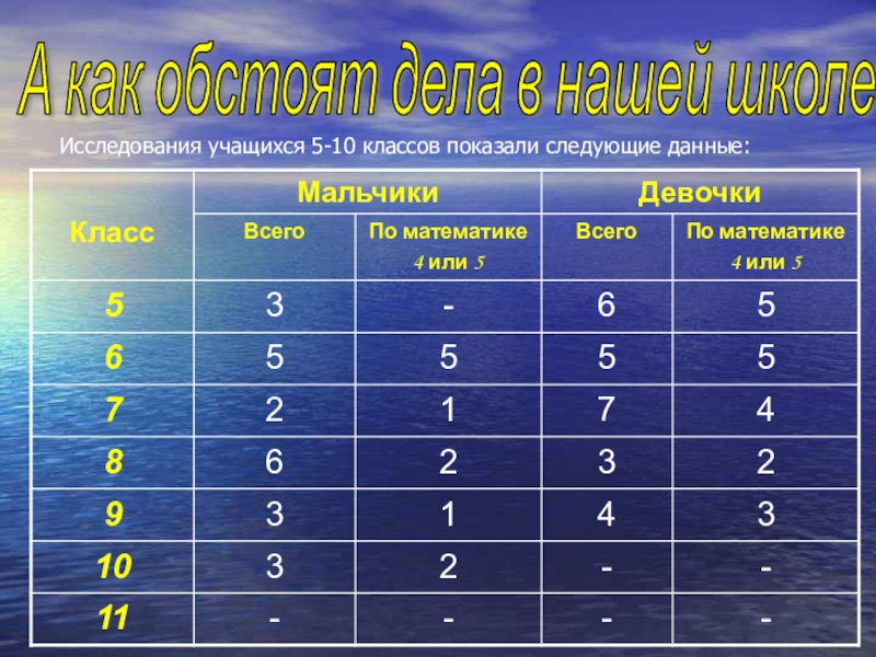 и 5 по математике успевают 0% мальчиков и 56% девочек.