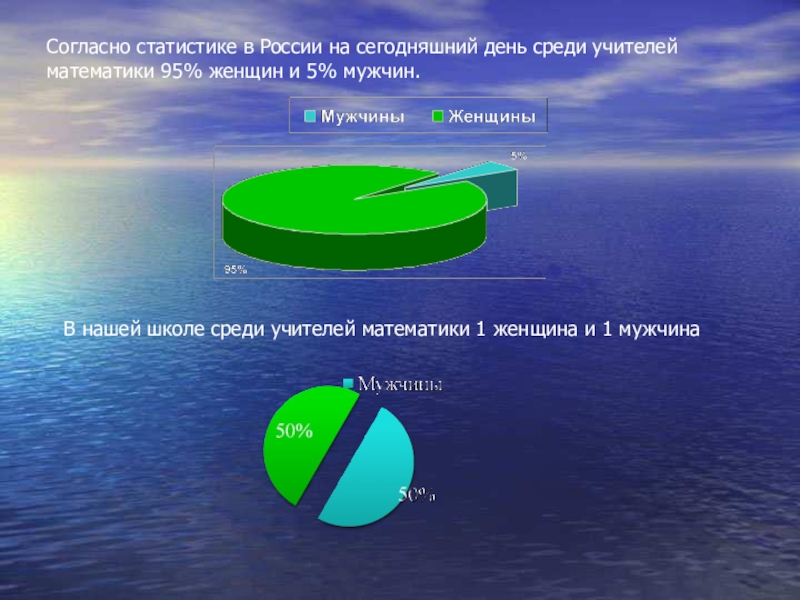 Слайд 9Согласно статистике в России на сегодняшний день среди учителей математики 95%
