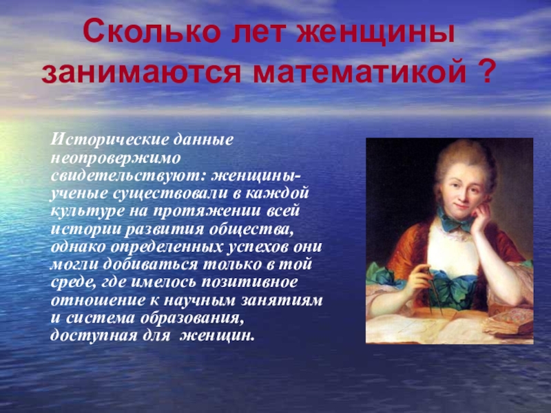 Слайд 6Сколько лет женщины занимаются математикой ?