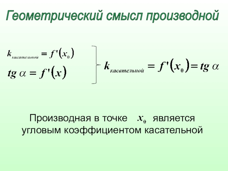 Геометрический смысл производнойПроизводная в точке     является угловым коэффициентом касательной