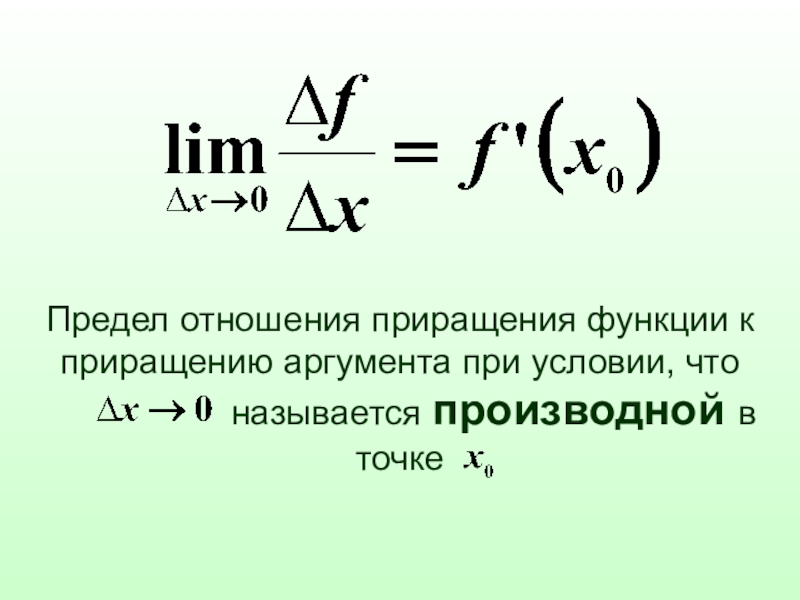 Слайд 6Предел отношения приращения функции к приращению аргумента при условии, что