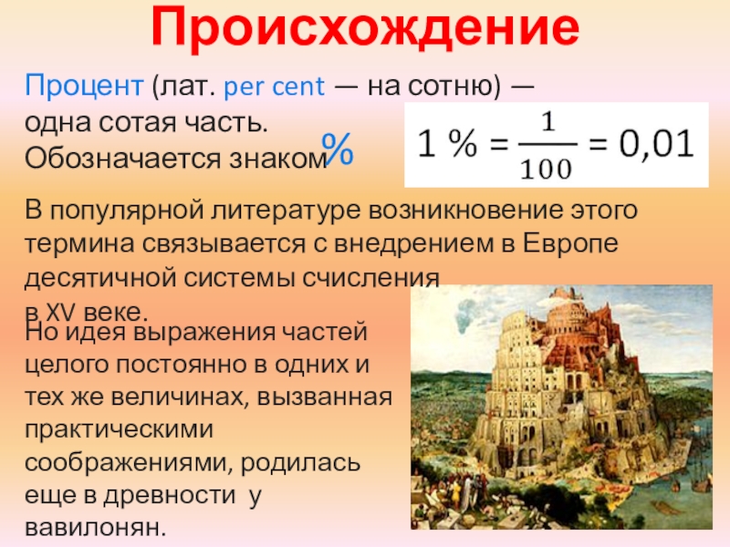 Процент (лат. per cent — на сотню) — одна сотая часть.