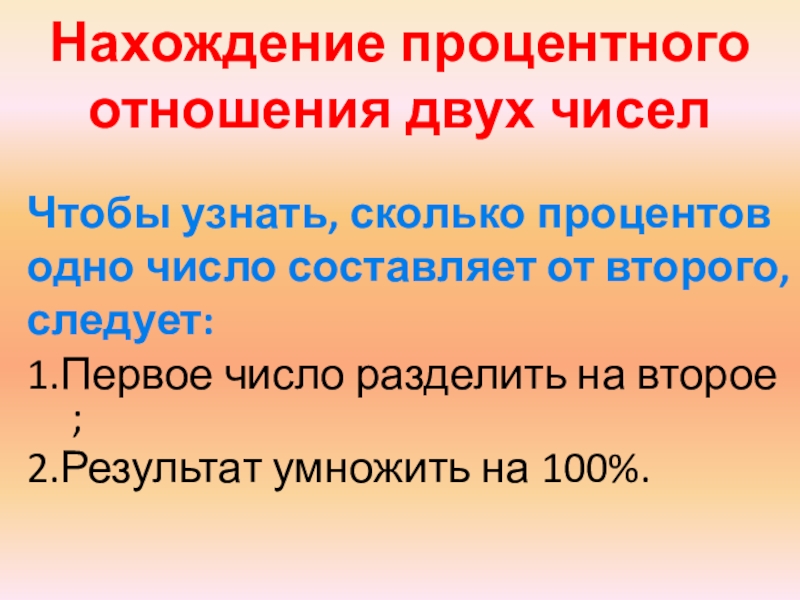 Чтобы узнать, сколько процентов одно число составляет от второго, следует: