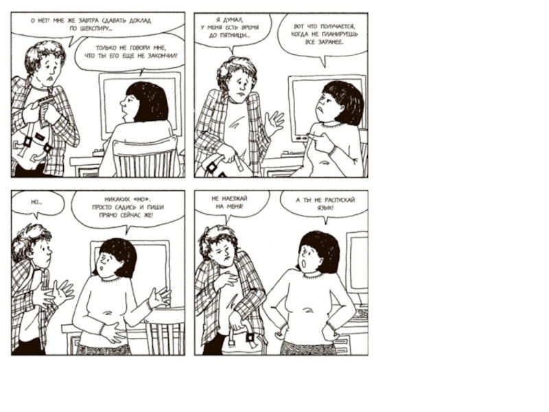 «Помоги мне дотащить пакеты. Скорее!» «Ты все еще не вынесла мусорное ведро? Сделай это сейчас!.. Чего ты ждешь? Давай!»
