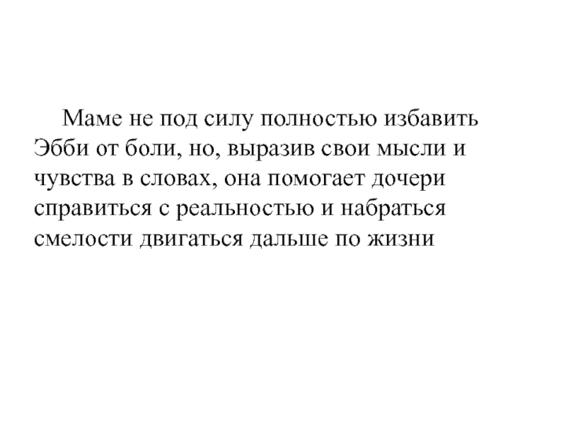 «Ты постоянно жалуешься. Ты ни разу даже не пыталась помочь себе сама. Я тебя вижу через десять лет — тебя будут мучить все те же проблемы, и ты будешь продолжать жаловаться».