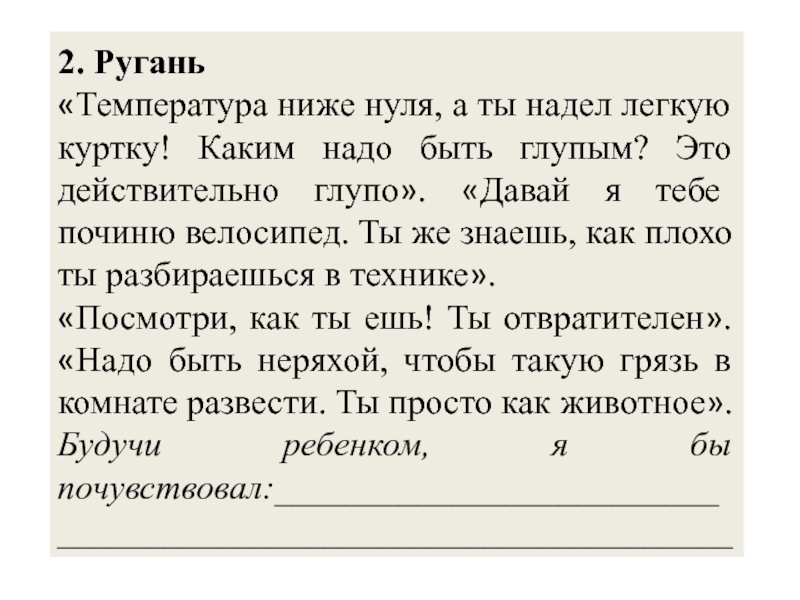 Слайд 90Прочитайте обычные реакции взрослого на поведение ребенка,