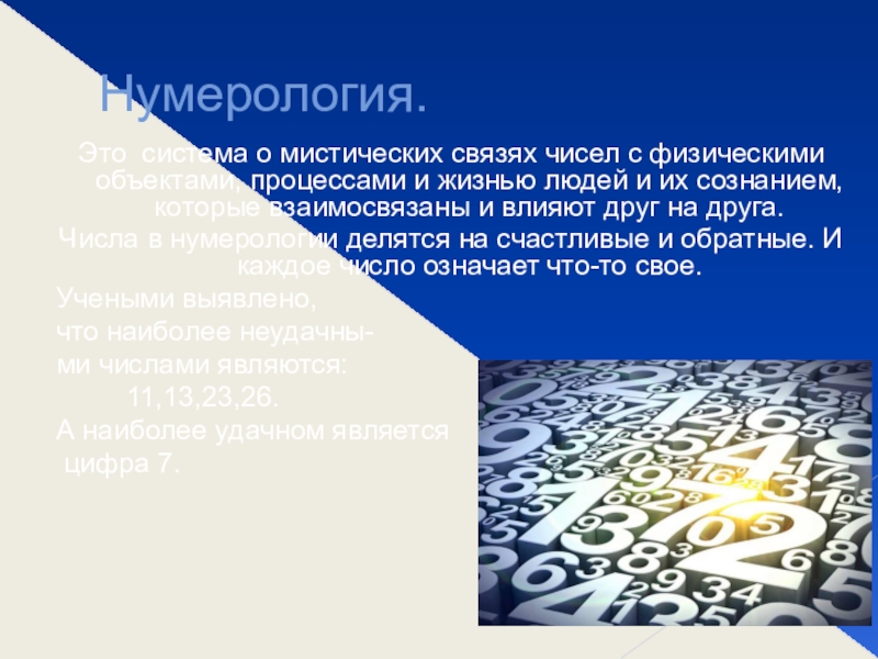 Это система о мистических связях чисел с физическими объектами, процессами и