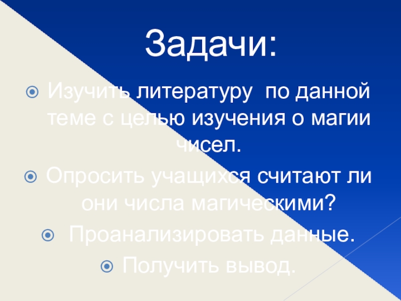 Изучить литературу по данной теме с целью изучения о магии чисел.