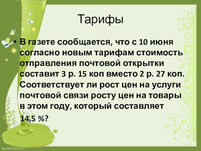 ставок, по которым взимается плата за услуги.