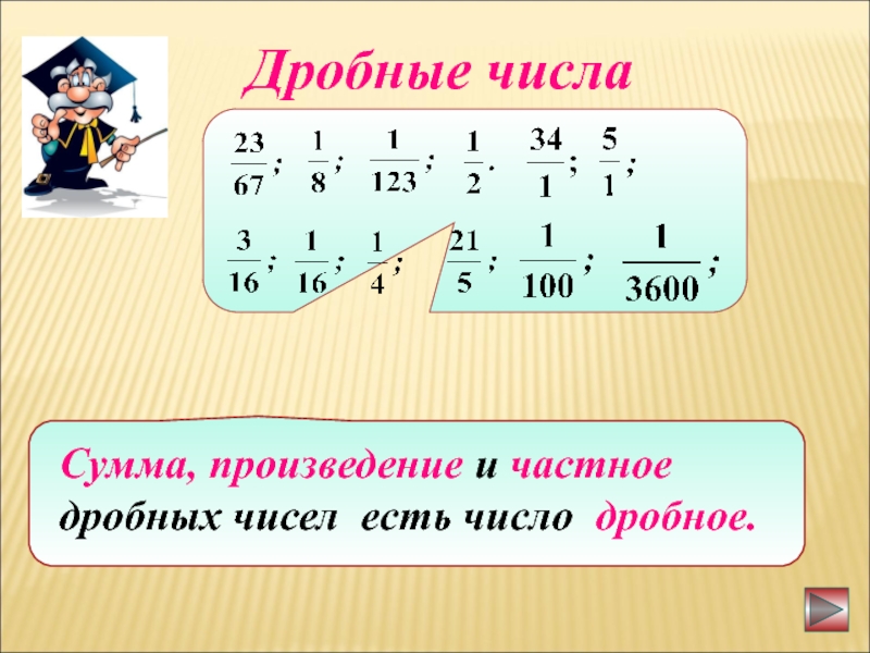 3)дроби общего вида, у которых числители и знаменатели могут быть любыми числами.