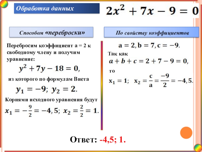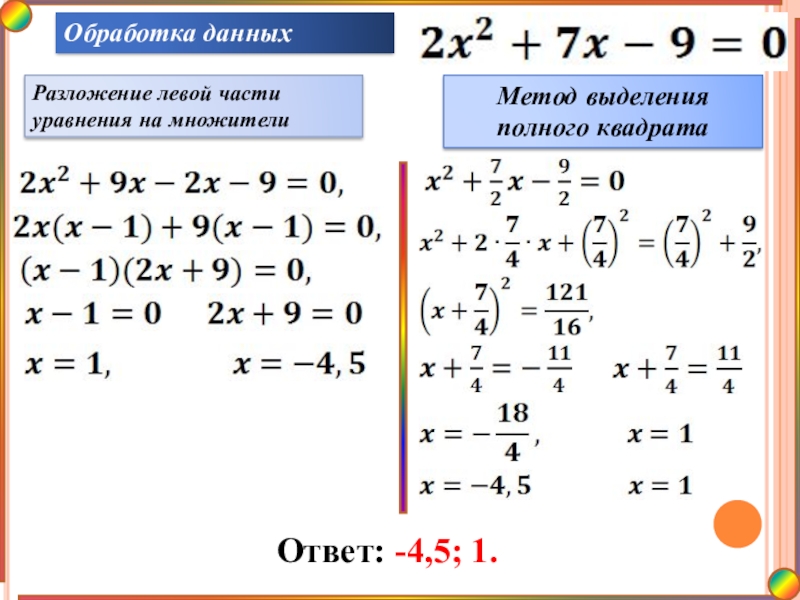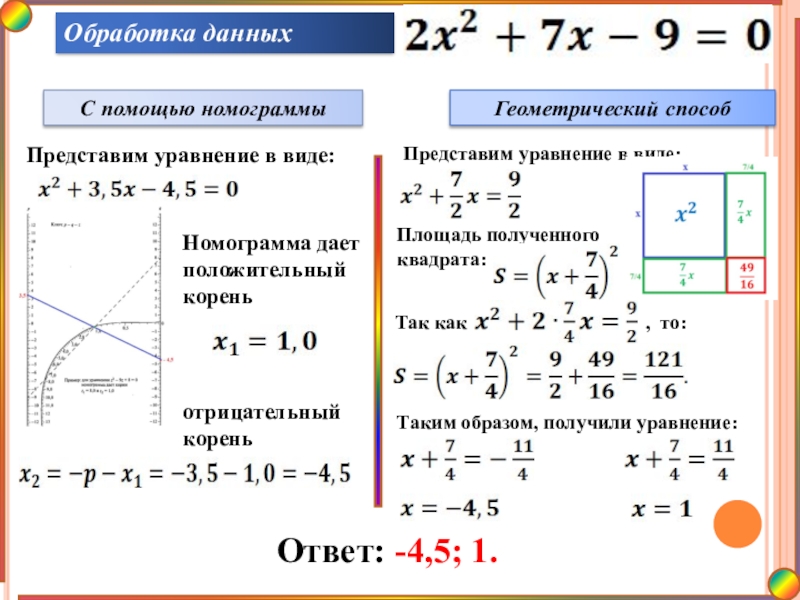 решения квадратных уравнений.