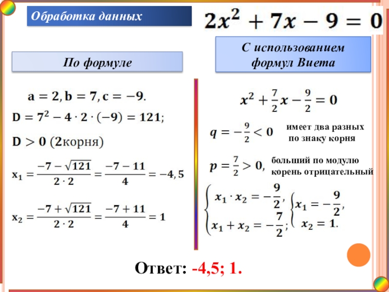 С использованием теоремы Виета (прямой и обратной)