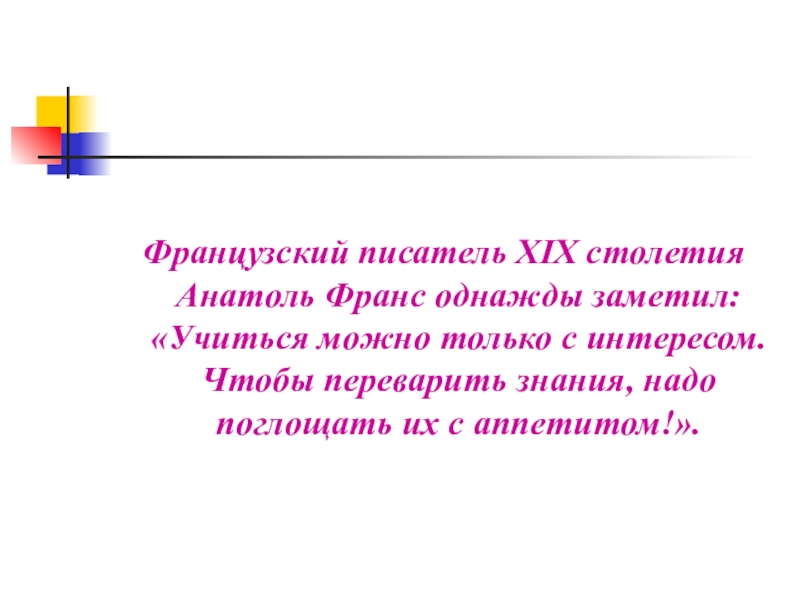 с интересом. Чтобы переварить знания, надо поглощать их с аппетитом!».