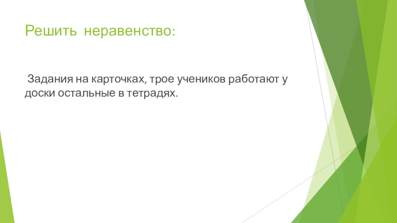 Задания на карточках, трое учеников работают у доски остальные в тетрадях.