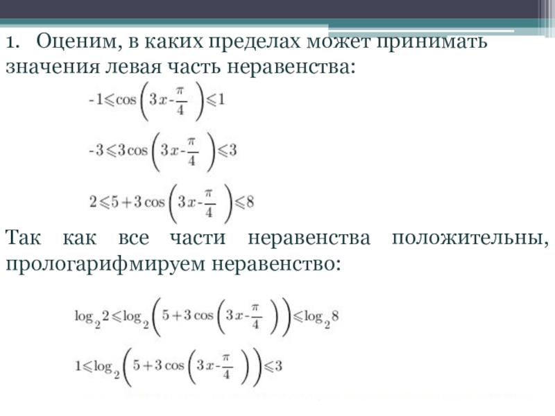 Так как все части неравенства положительны, прологарифмируем неравенство: