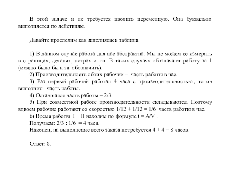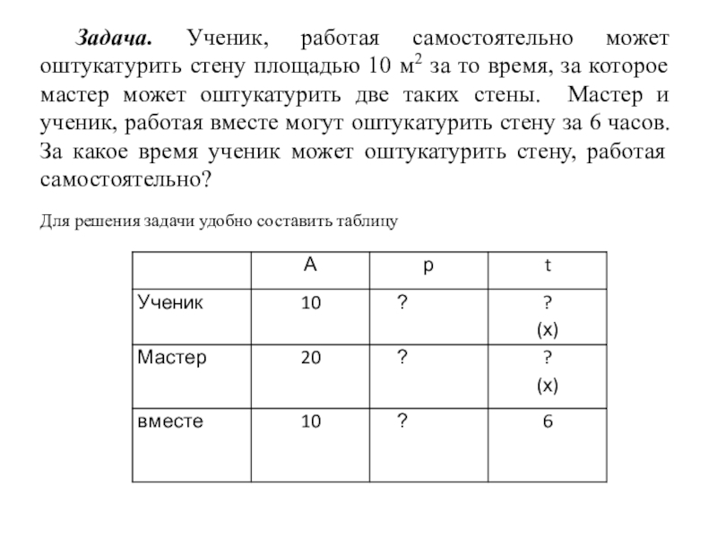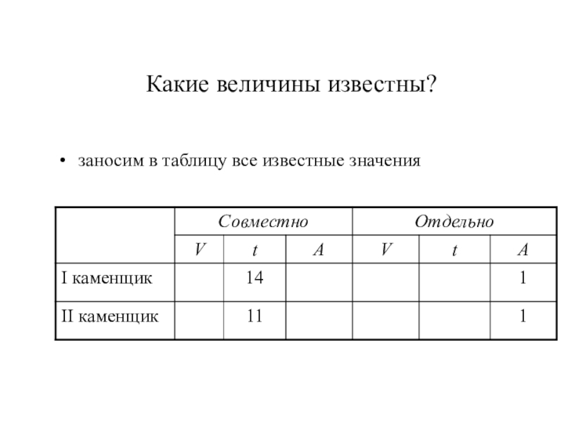 Читаем условие задачи и заполняем 2-й столбик таблицы: