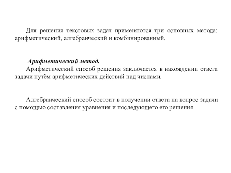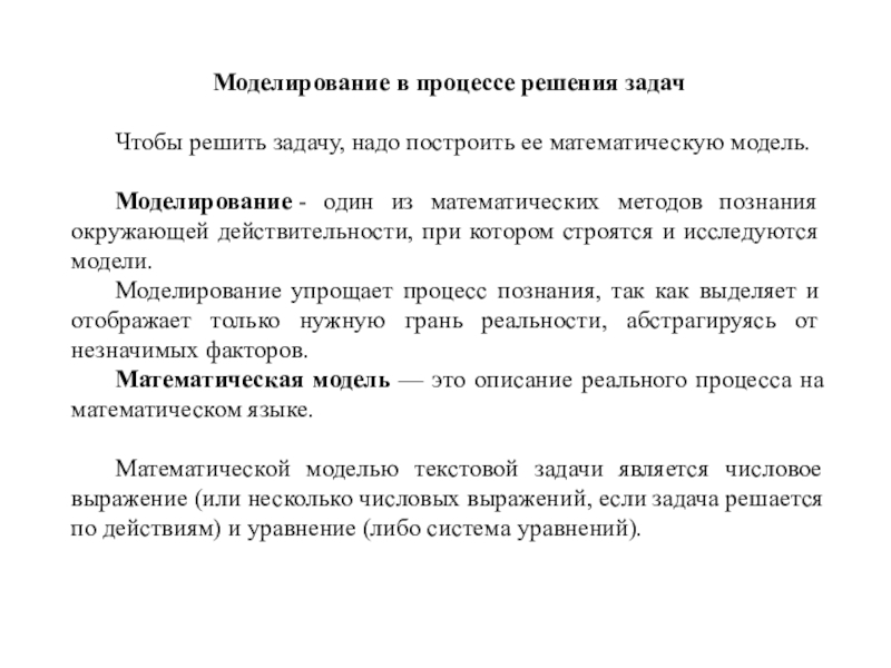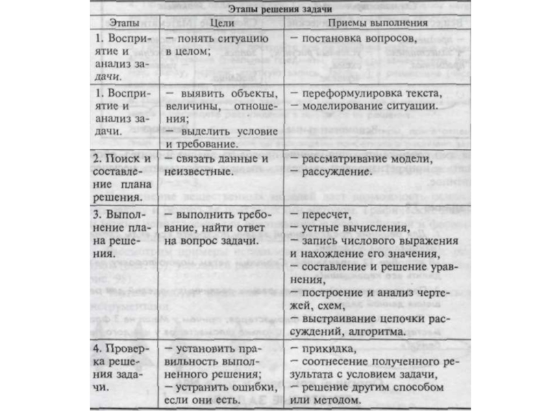 Под решением задачи понимается запись (описание) алгоритма, дающего возможность выполнить требование задачи (получение ответа задачи относится прежде всего к области вычислительных умений)
