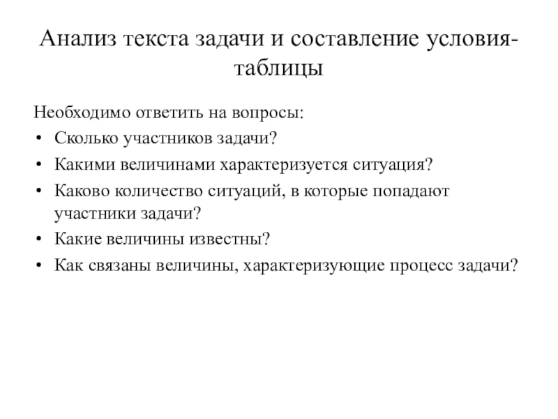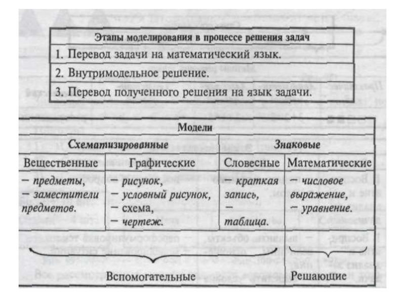 строить модель условия задачи (в виде таблицы, схемы, рисунка или уравнения), в которой даны значения двух из трех взаимосвязанных величин, с целью поиска решения задачи;