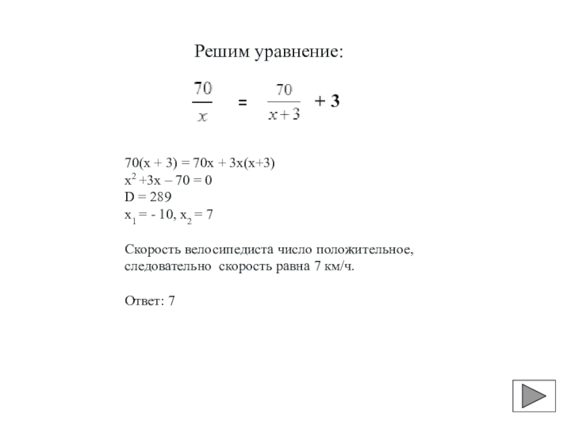 Скорость велосипедиста число положительное, следовательно скорость равна 7 км/ч.