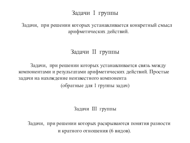 решать задачи разных типов (на работу, на покупки, на движение), связывающих три величины, выделять эти величины и отношения между ними;