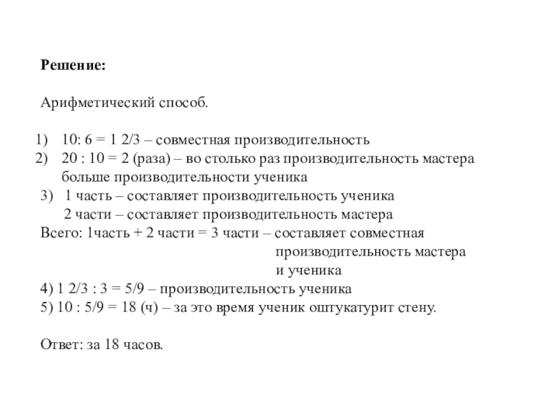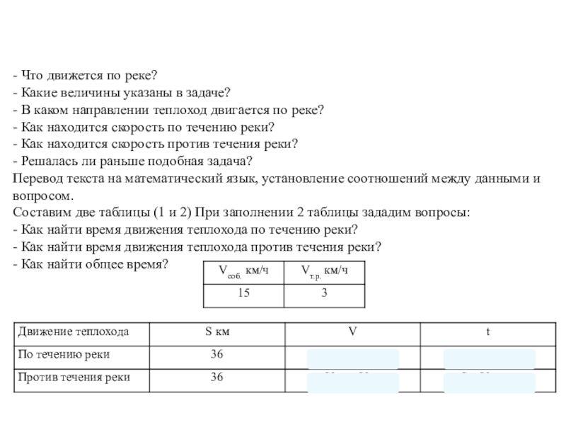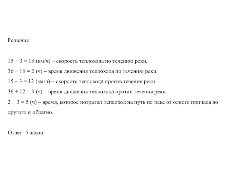 Решение несложных задач на движение в противоположных направлениях, в одном направлении, движение по реке по течению и против течения. Решение задач на совместную работу. Применение дробей при решении задач.