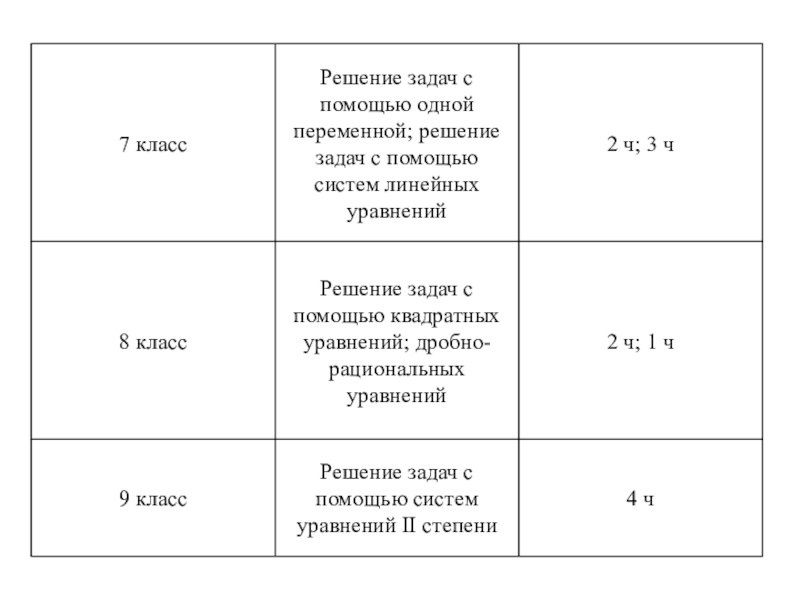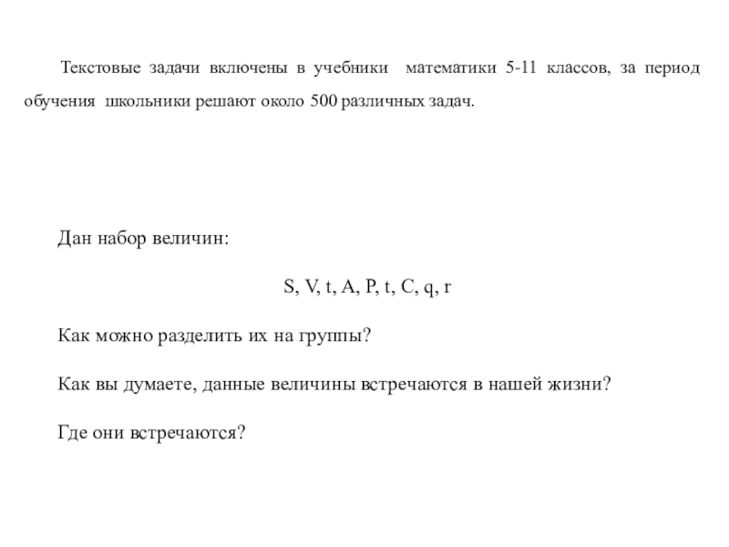 Текстовые задачи включены в учебники математики 5-11 классов, за период обучения школьники решают около 500 различных задач.