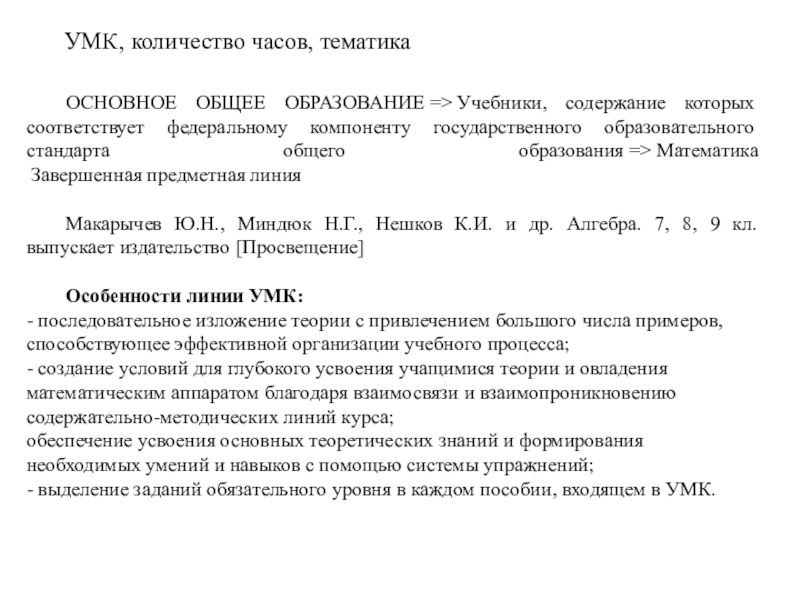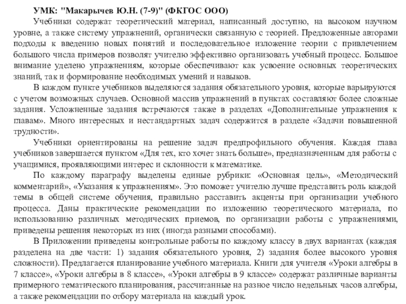Слайд 5УМК: "Макарычев Ю.Н. (7-9)" (ФКГОС ООО)