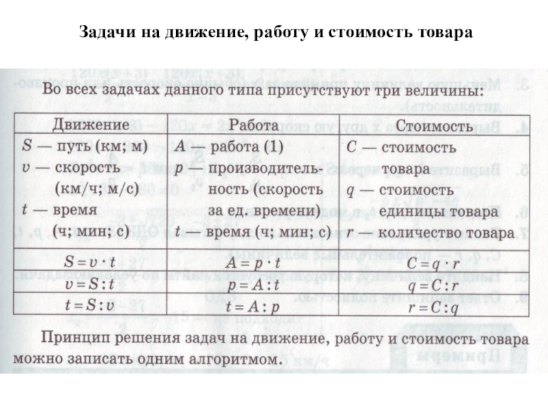 скорости. Зависимости между единицами измерения каждой величины. Зависимости между величинами: скорость, время, расстояние; производительность, время, работа; цена, количество, стоимость.