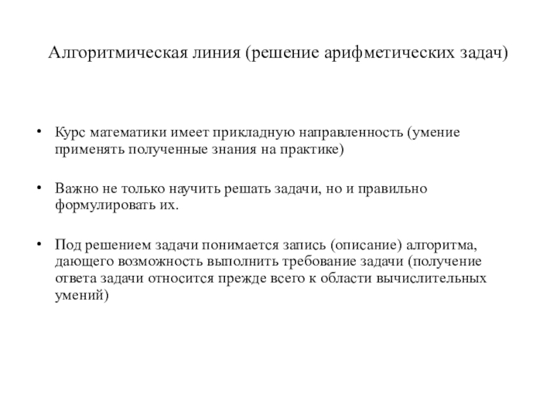 Слайд 7Алгоритмическая линия (решение арифметических задач)