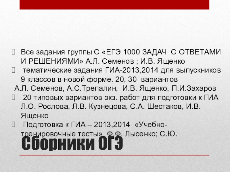Слайд 5Сборники ОГЭ