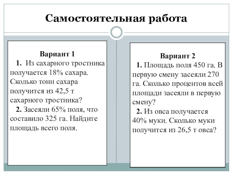 2 тип. Нахождение числа по его процентам ( дана часть и процент, найти всё).
