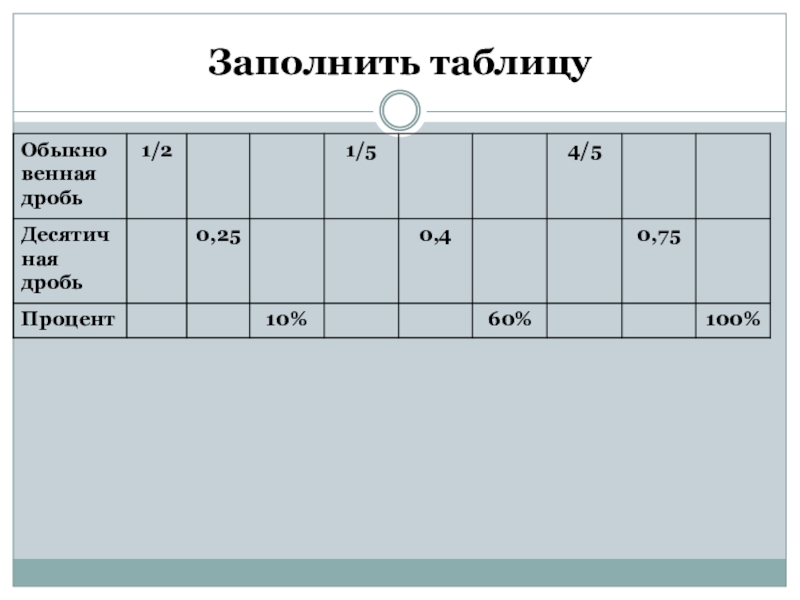 Слайд 2Представьте данные десятичные дроби в процентах: