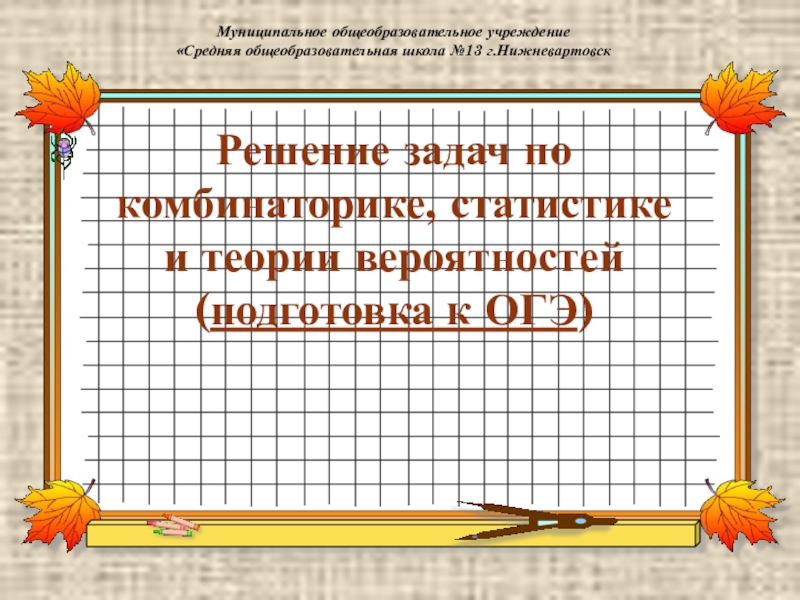 Решение задач по комбинаторике, статистике и теории вероятностей(подготовка к ОГЭ)Муниципальное общеобразовательное учреждение«Средняя общеобразовательная школа №13 г.Нижневартовск